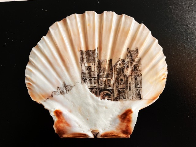 Vanaf 1 december is in het gemeentehuis van Stede Broec een bijzondere expositie te zien van kunstenares Inge Leuring-de Boer. Zij experimenteert inmiddels al drie jaar met het beschilderen van prachtige schelpen. Het parelmoer in de schelp zorgt daarbij voor een mooi glanzend effect. Inge gebruikt onder andere stiften, glasverf en acrylverf. Elke schelp is anders. Door de vorm en de onregelmatige oppervlakte bepaalt de schelp zelf welke afbeelding mogelijk is. Sommige schelpen krijgen een abstract patroon, andere laten juist realistische beelden zien. Zo schilderde Inge bijvoorbeeld madeliefjes uit haar tuin, maar ook een versie van een beroemde ets van Paulus Potter.