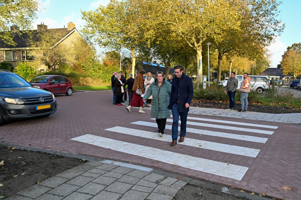 Wethouder Thijs Visser is blij dat het eerste deel van de herinrichting van de weg nu is uitgevoerd: “Hoewel er een 30 km/uur bord stond was de weg nog ingericht als een 50 km/uur weg. Auto’s reden daardoor vaak te hard. Met de inbreng van de bewoners is de Overstort nu ingericht als een 30-km/uur weg.”