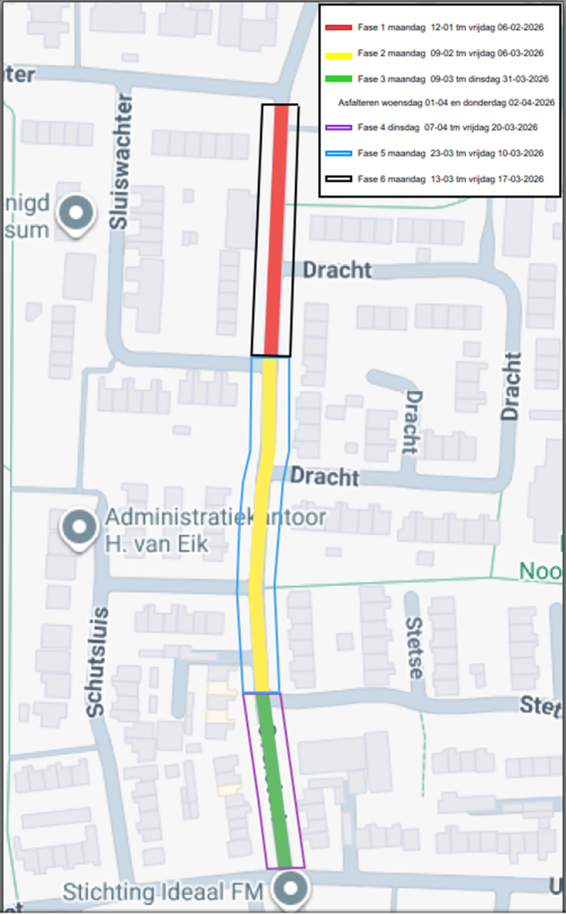 De weg wordt smaller. Er komen nieuwe verkeersdrempels en de stoep worden vervangen. Daarna krijgt de weg nieuw asfalt. De werkzaamheden worden uitgevoerd door aannemers DeJongCeba B.V. en KWS.