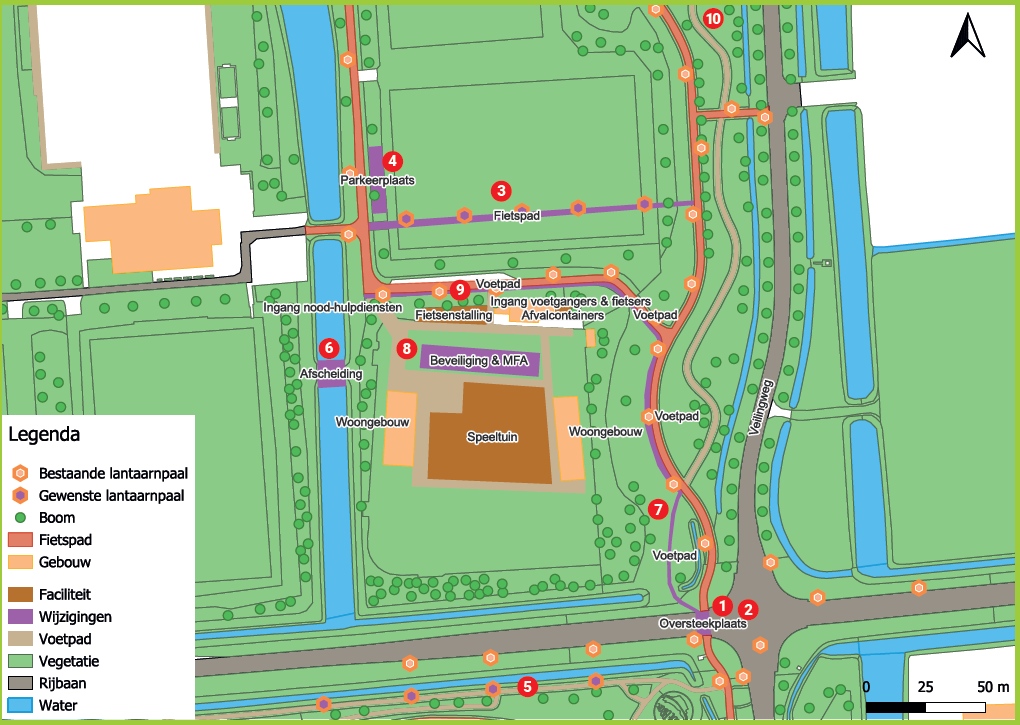 - Apart voetpad realiseren naast fietspad parallel aan terrein opvanglocatie